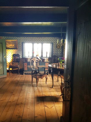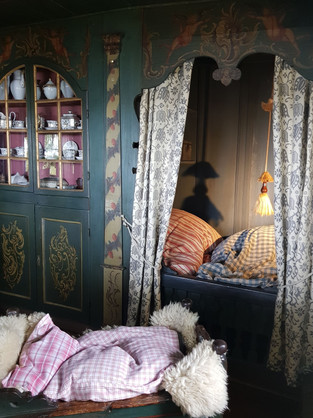 The sandstone-tiled hallway leads to the copiously decorated sleeping quarters. The discoveries and trading routes of the seafarers enabled stylistic influences and purchases from Holland, England or Russia. Dutch Delft Tiles served as durable, decorative wall coverings and protected from humidity. Painted wood panels and berths or closets built into the walls show how ingeniously living space was utilized. The size of the berths leads us to believe that people were short... But appearances can be deceiving: according to lore, the size of the berths was due to a half-seated sleeping position of the inhabitants. Almost inconceivably, the tune of “Sound of the Shire” from “Lord of the Rings” comes to my mind.